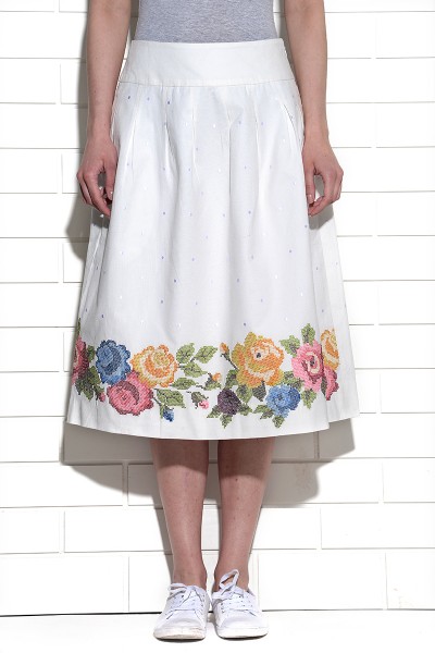 Coromell waisband skirt with pleats and rose cross stitch embroidery
