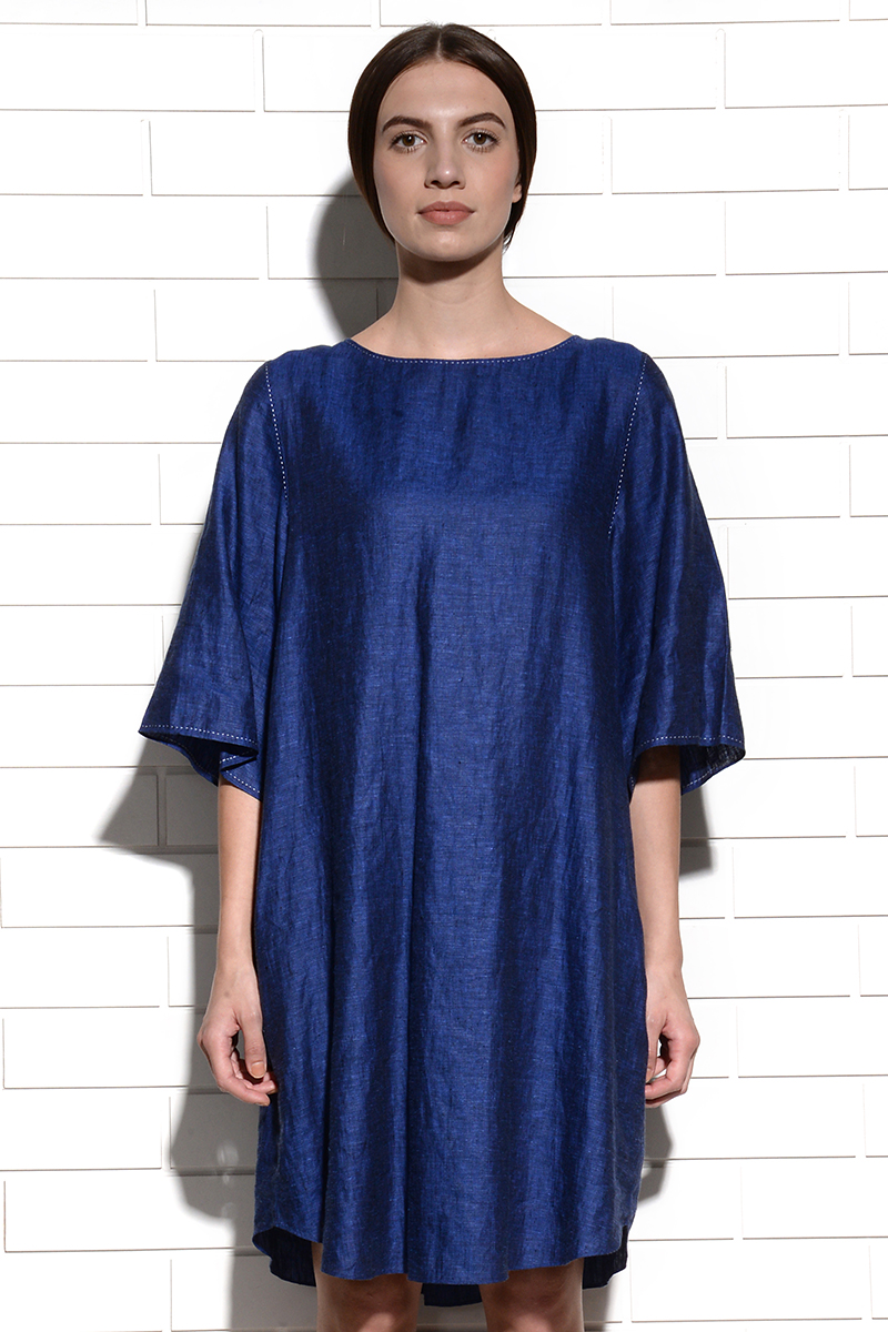 Oversized tunic with hand stitch detailing, centre back box pleat. An elegant dress which can see you through day and night.
